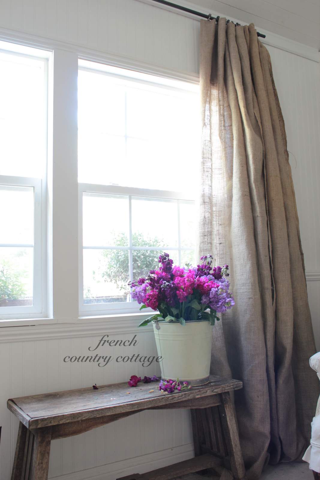 Simple Burlap Drapes French Country Cottage